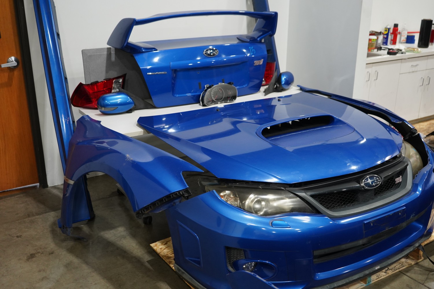 JDM 2008-2014 SUBARU WRX STI FRONT CLIP Front Bumper Rear bumper Grill Head Lights Tail lights trunk Side mirrors Fenders Hood Side skirts Core Support No part out. IMPORTED FROM JAPAN! Please note this item is only for LOCAL PICK UP, Shipping is not available for this item.